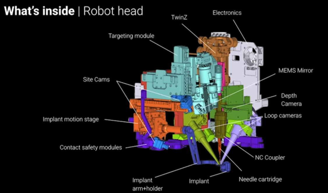 在侵入式脑机接口的电极植入过程中,OCT技术可发挥“实时导航”与“动态避障”的双重作用,这一点在马斯克旗下Neuralink公司的技术突破中体现得最为显著。马斯克始终将OCT技术作为Neuralink R1手术机器人的核心视觉支撑,摒弃了传统现成显微相机,自主研发了结合6套高倍光学系统与OCT系统的复合视觉导航机构,这也是其实现电极快速、精准植入的关键所在。该系统能够以毫秒级精度跟踪脑组织的每一次微米级搏动,同步预判电极插入路径,在柔软如豆腐的脑组织中精准避让密集的毛细血管,彻底解决了侵入式脑机接口电极植入的核心痛点。Neuralink的电极线比红细胞还要细,单根线上集成多个微型电极,借助OCT的实时导航,128根电极线的植入仅需20分钟,单次植入速度从初代的17秒/针狂降至1.5秒/针,128次“穿针引线”全程零失误,大幅提升了手术效率与安全性。更值得关注的是,OCT技术的加持的使得Neuralink实现了电极植入深度的突破,新型植入针深度可达50毫米,能够触及大脑视觉皮层等深层区域,为后续盲人复明等更复杂应用奠定了基础。临床数据显示,借助OCT导航的电极植入手术,并发症发生率显著降低,2024年Neuralink公布的安全性报告显示,13位接受手术的患者中仅有1人出现轻微炎症反应,经药物治疗后快速恢复,而截至2025年末,全球已有超1万名患者排队等候接受这项融合OCT技术的脑机接口手术,足见其技术认可度。